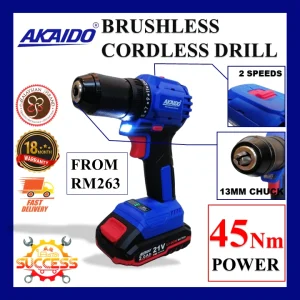 AKAIDO Brushless Cordless Drill 1/2″ 13MM 45N.M Powerful Tools for Industrial Use and Household Use