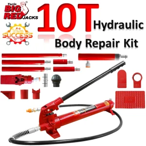 BIGRED 10 Ton Porta Power Kit, 17-pcs Portable Hydraulic Ram Auto Body Frame Repair Kit with Blow Mold Carrying Storage